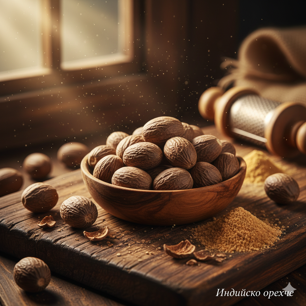 Индийското орехче е малко, но има желание за големи подвизи: успокоява стомаха, стопля мозъка и помага за добрия сън. Ако можеше да говори, щеше да каже: „Не ме слагай много — аз съм концентриран талант!“